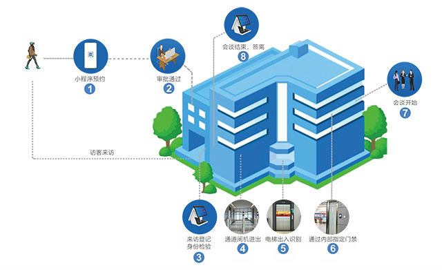 一般訪客管理的流程為:訪客計(jì)劃拜訪---被訪人同意---訪客來(lái)訪簽到---門(mén)禁通行---拜訪結(jié)束訪客簽離
