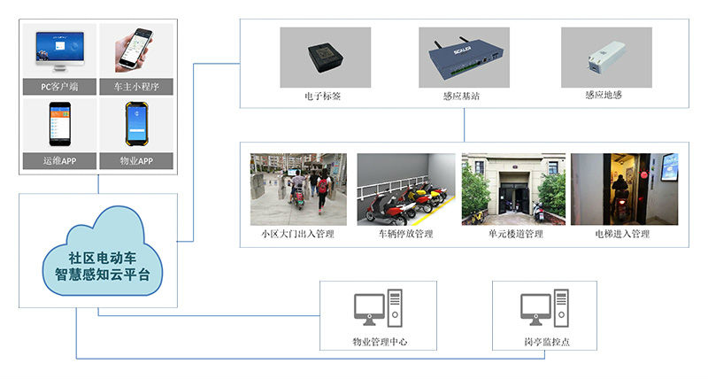 小區(qū)電瓶車管理系統(tǒng)由電子標(biāo)簽、基站、地感、云平臺(tái)、PC web客戶端及微信小程序客戶端構(gòu)成。具有技術(shù)先進(jìn)、性能穩(wěn)定、使用便利、成本低等優(yōu)點(diǎn)。通過“物聯(lián)網(wǎng)、大數(shù)據(jù)、視頻分析、云計(jì)算”等技術(shù)手段來實(shí)現(xiàn)電瓶車消防安全防控及交通安全治理,為城市電動(dòng)自行車管理建立非機(jī)動(dòng)車登記信息庫、公共安全射頻管控網(wǎng)提供數(shù)據(jù)支持。